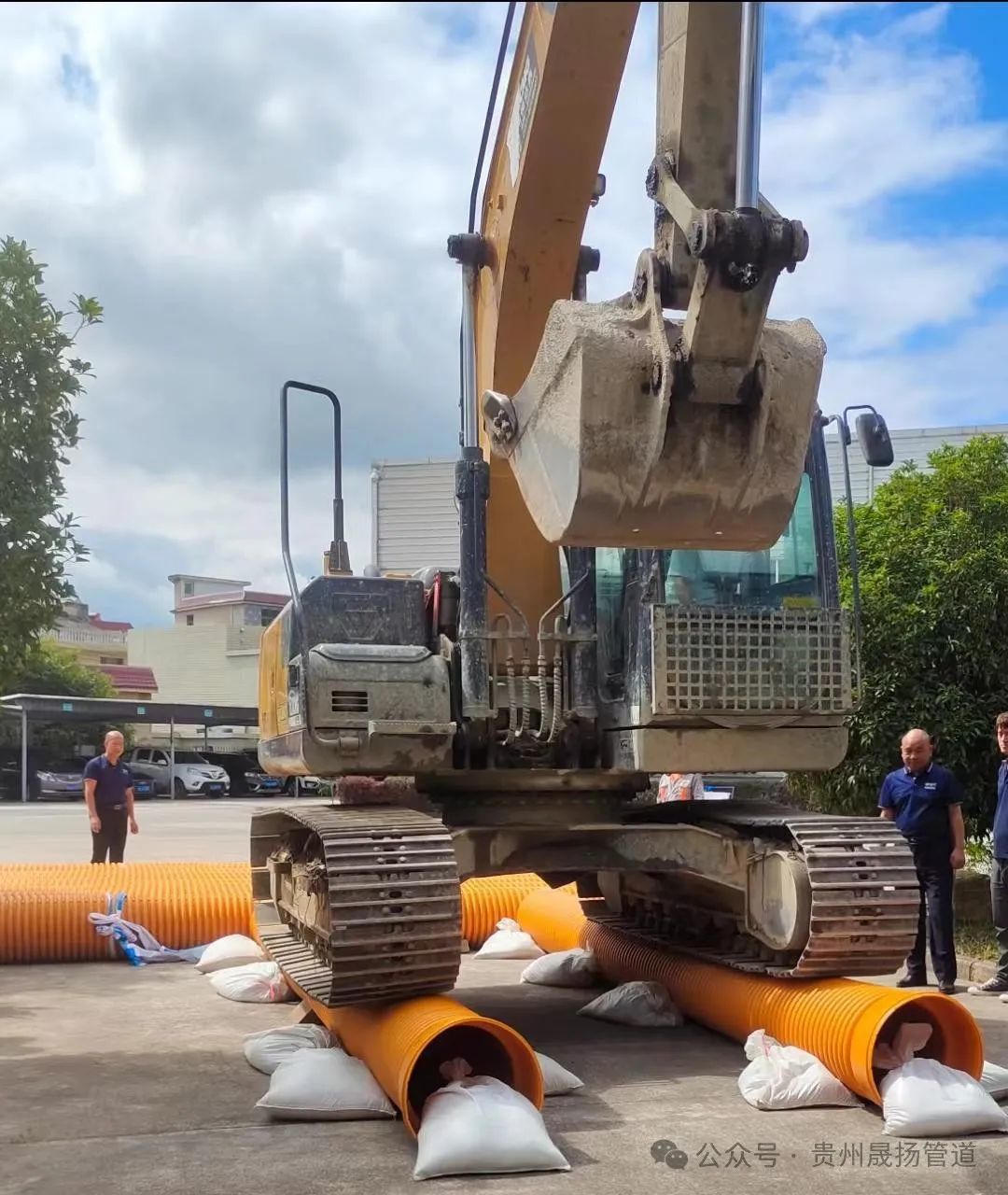 改性聚丙烯雙色雙壁增強(qiáng)波紋管20噸挖掘機(jī)碾壓試驗(yàn)